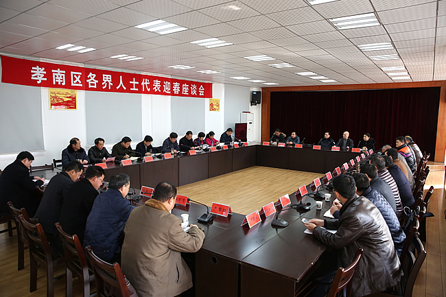 1月20日下午,孝南区各界人士代表迎春座谈会召开,主要目的是通报情况,增进了解,共商孝南发展大计。区委书记袁华江主持会议并讲话,区领导程涛、盛夏、王望姣、张全民、张莉、戴少平、程培毅、陈小华出席会议。