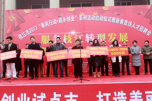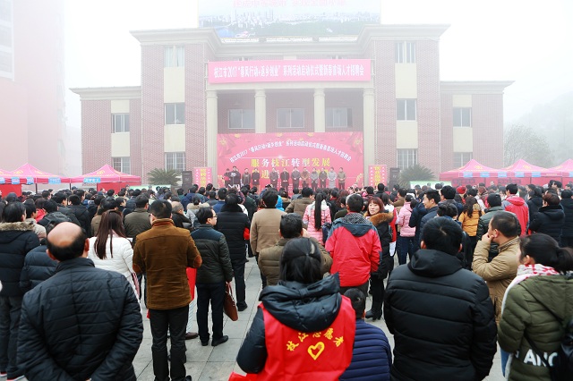 2月4日,枝江市委统战部、枝江市人社局等单位联合举办的2017“春风行动+返乡创业”系列活动暨新春首场人才招聘会在枝江大礼堂广场举行。