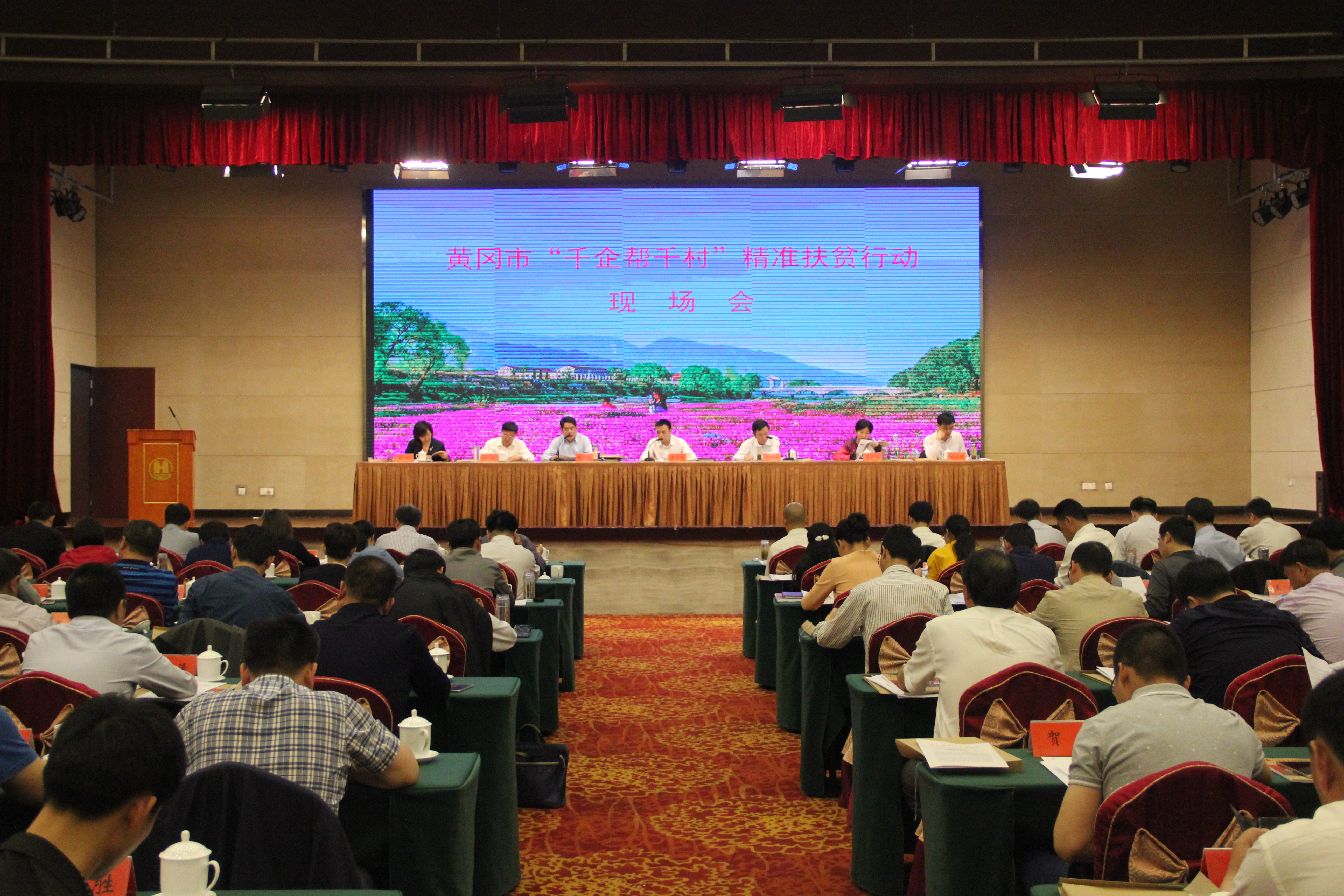 5月5日,黄冈市“千企帮千村”精准扶贫行动现场推进会在英山县召开。市委常委、统战部长、工会主席易先荣出席会议并讲话,市政协副主席、市工商联主席张友启主持会议,市委副秘书长肖燕梅,市政府副秘书长、市扶贫办主任方荣出席会议。
