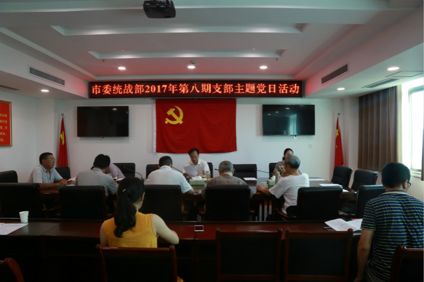 8月7日下午,咸宁市委统战部组织召开第8期支部主题党日活动,全体党员干部共同学习习近平总书记在省部级主要领导干部“学习习近平总书记重要讲话精神,迎接党的十九大”专题研讨班开班式上的重要讲话精神和市委常委会会议学习精神,市委常委、统战部长周勇出席,市委统战部常务副部长刘国承主持会议。