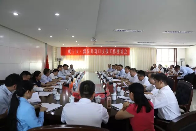 9月7日,咸宁市?温泉县党委政府对口支援工作座谈会在新疆维吾尔自治区博尔塔拉蒙古自治州温泉县召开,双方围绕深入贯彻落实习近平总书记关于新疆工作重要指示和中央第二次新疆工作座谈会精神,全面落实第六次全国对口支援新疆工作会议部署和两市县主要领导会谈成果,以及做好新一轮对口援疆工作和两省区合作发展进行考察交流。