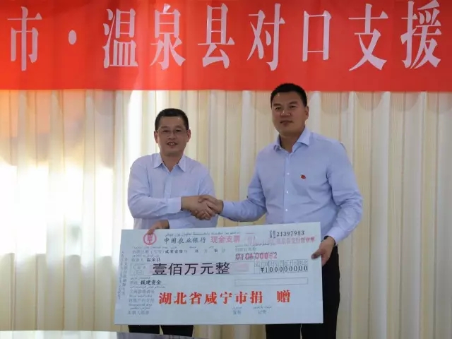 为进一步加大对温泉县援建力度,咸宁市向温泉县援助项目资金100万元,同时,嘉鱼、通山、崇阳、通城、赤壁和咸安6个县(市、区)各向该县3个乡镇场援助资金30万元。