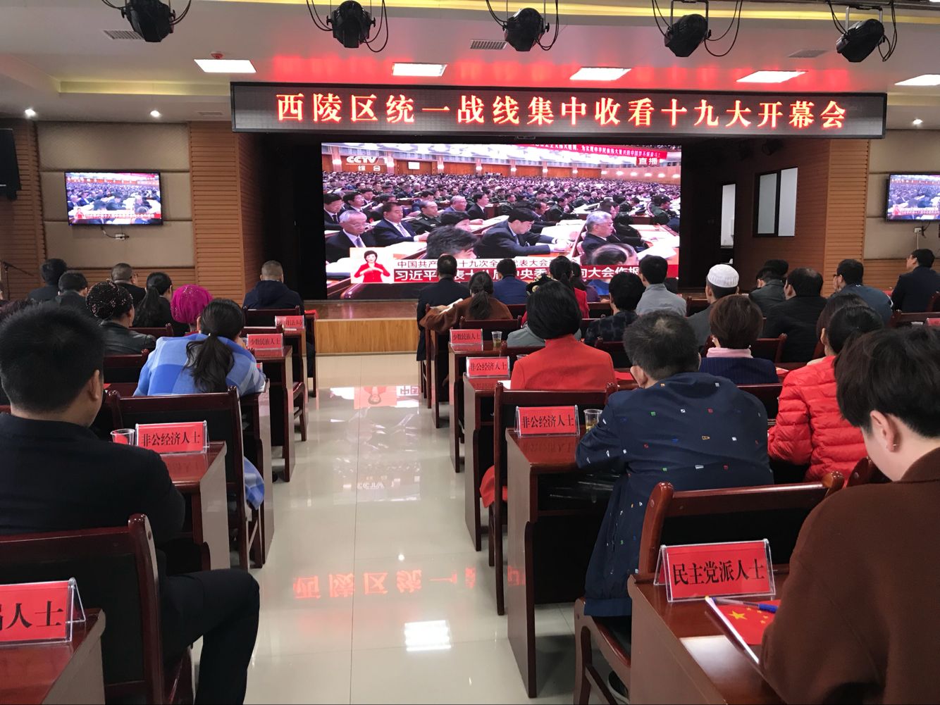 10月18日上午,西陵区统战部组织机关全体干部和民主党派人士、少数民族人士、非公有制经济人士、新的社会阶层人士、归侨侨眷代表共200多人次,集中收看了中国共产党第十九次全国代表大会开幕会。西陵区委书记、区人大常委会主任卢斌,区委副书记、区人民政府区长任蔚、区委副书记郑世东,区委常委、区委组织部长、统战部长文君、宜昌新疆工作站站长艾海提参加收看。