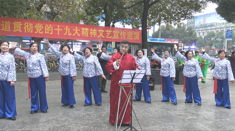 “十月十八召开十九大,十九大会使党更纯洁更伟大,十九大会使中国更强大……”这些天,这曲湖北大鼓《召开十九大祖国更强大》,传遍了荆州城区。