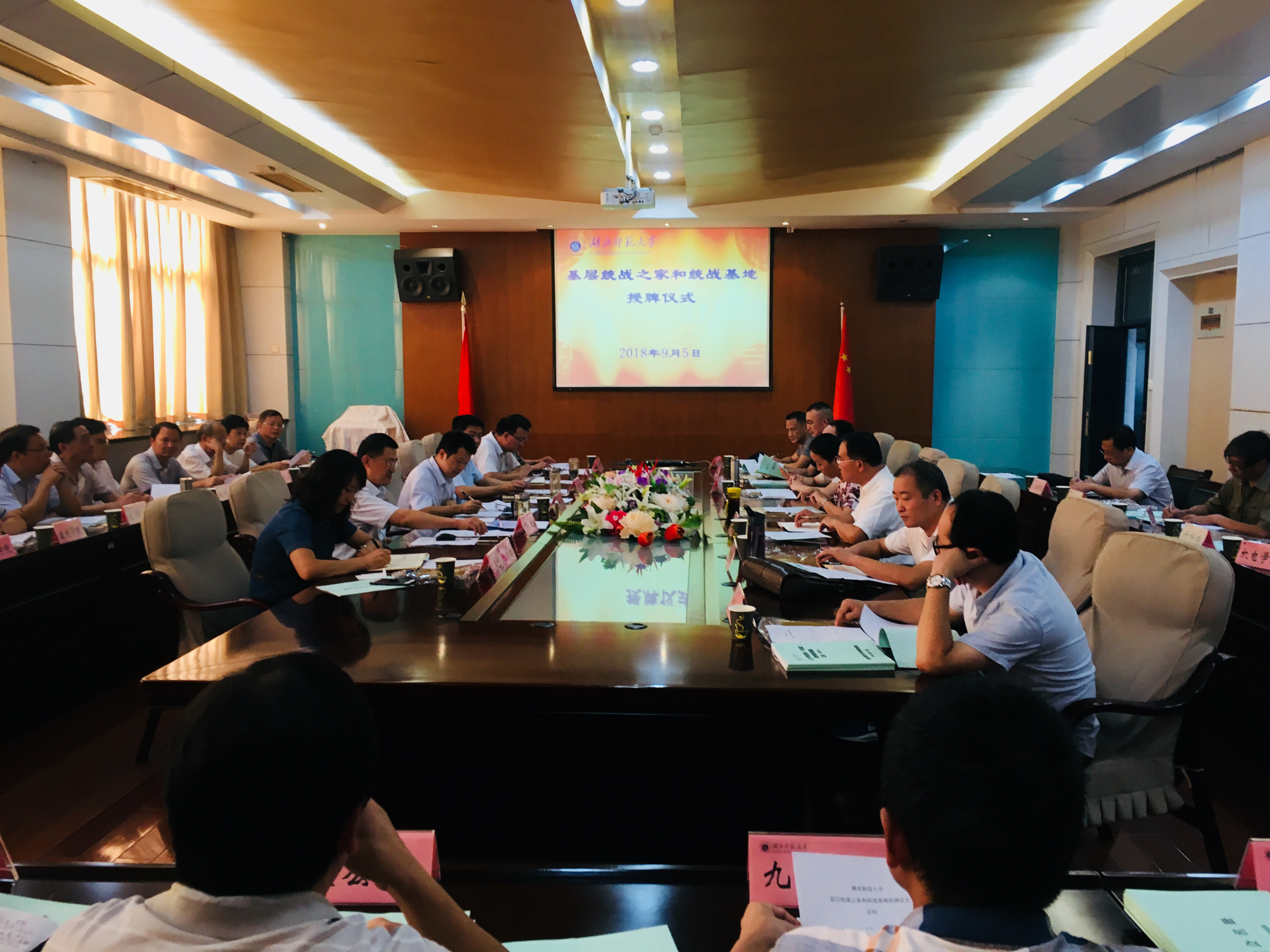 余翔宣读了学校《关于公布2018年基层统战工作实践创新基地示范点的通知》。校领导和党政办、组织部、统战部负责人共同为基层统战之家代表和2018年立项建设的统战基地授牌。政法学院、体育学院党总支负责人作为2017年统战基地代表先后做了交流发言,分别介绍各自基地的做法、经验和成效。