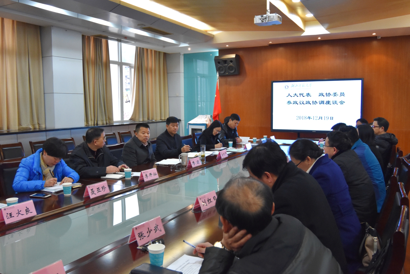 12月19日,湖北师范大学召开参政议政协调座谈会。党委副书记、校长李宏出席会议并讲话,党委常委、副校长李开灿,统战部、各民主党派基层组织、统战团体负责人和各级人大代表、政协委员等参加座谈会,会议由党委副书记、统战部部长马列军主持。