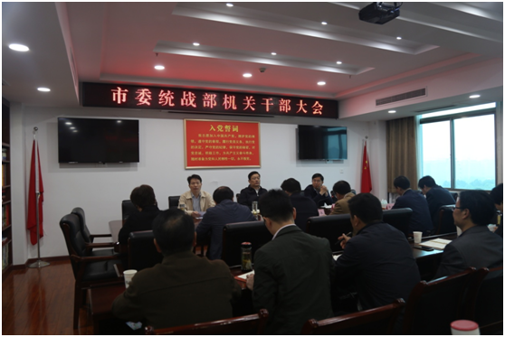 丁小强要求,要坚定不移加强党的领导,牢牢把握统一战线的领导权,最大限度凝聚各阶层各方面的智慧和力量,巩固团结奋斗的共同思想政治基础。要坚定不移服务中心大局,充分发挥统一战线的优势,引导各界统战成员深入调查研究,积极建言献策,投身咸宁高质量发展的火热实践。要坚定不移扩大朋友圈,深入推进民族团结,探索党外知识分子和新的社会阶层人士统战工作模式,持续做好港澳台争取人心工作,切实为咸宁市改革发展汇聚最大正能量。要坚定不移建设过硬的统战干部队伍,不断提高政治引领能力、政策把握能力、研究问题能力、联谊交友能力、推动落实能力和把握化解风险挑战的能力,为全市经济社会高质量发展作出新的更大贡献。