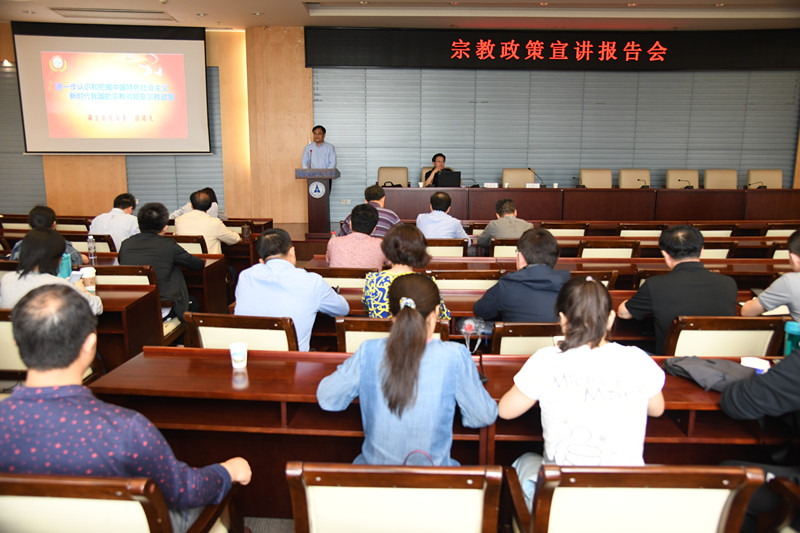 5月17日下午,中南财经政法大学党委统战部邀请省民宗委二级巡视员段绪光宣讲宗教政策,作了“进一步认识和把握中国特色社会主义新时代我国的宗教问题和宗教政策”的主题报告。学校各学院党委书记、党委副书记、辅导员,各相关职能部门负责人和办公室主任一同聆听了报告。报告会由中南财经政法大学党委副书记侯振发主持。