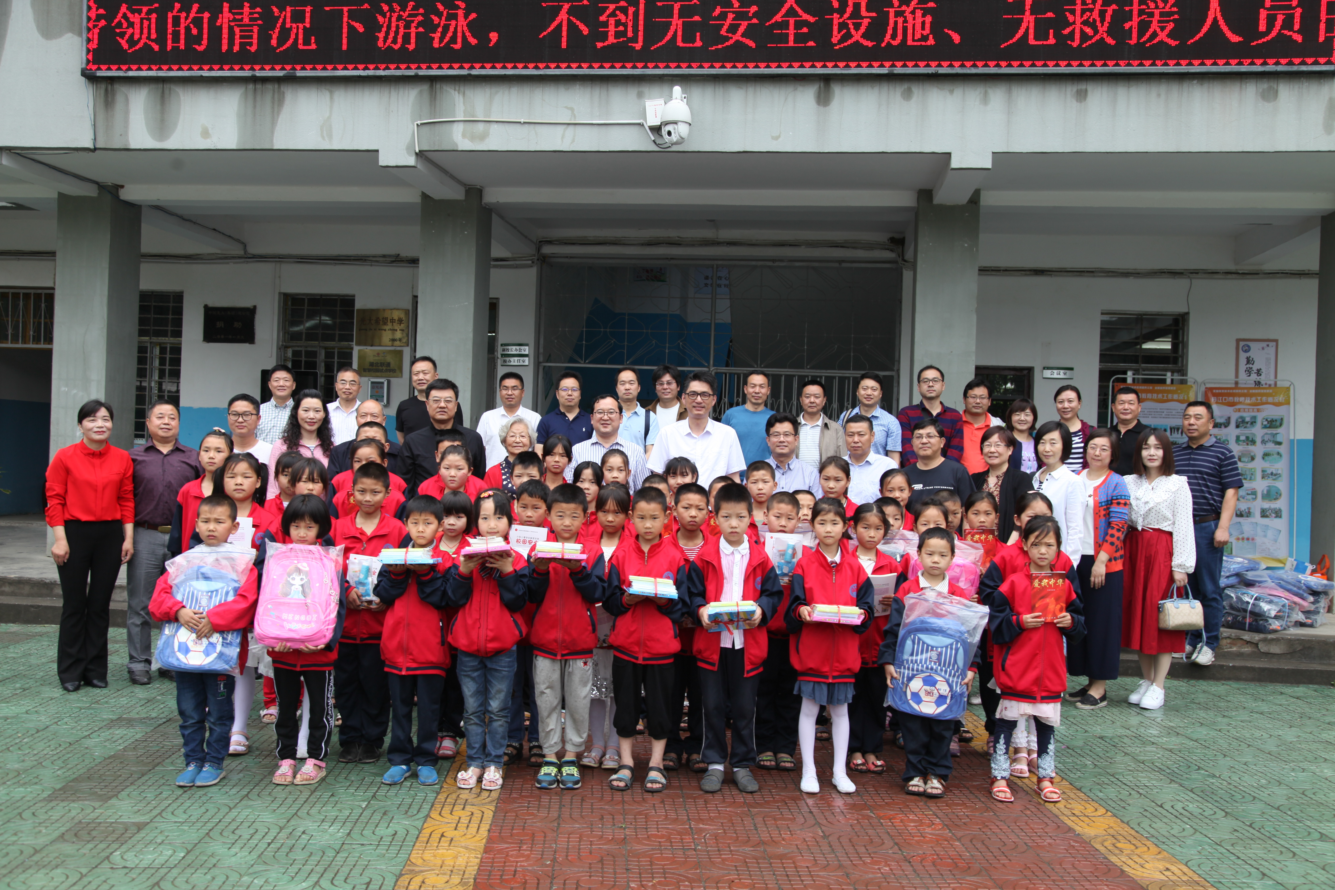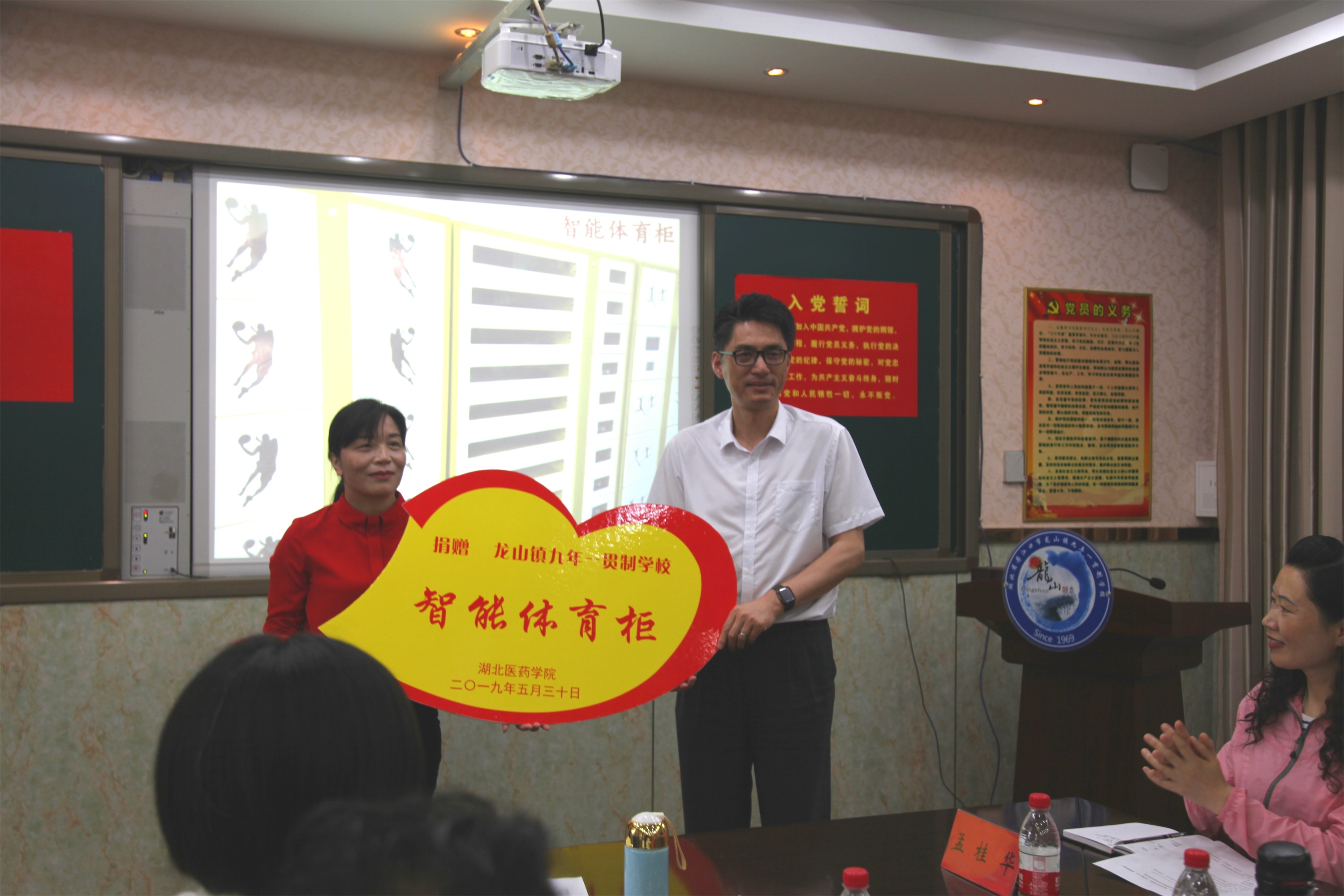 此次教育帮扶活动湖北医药学院向龙山镇九年一贯制学校捐赠教育读本650册、应急包50个、书包80个、学习用品30套、儿童牙具100套、智能体育运动柜1套。