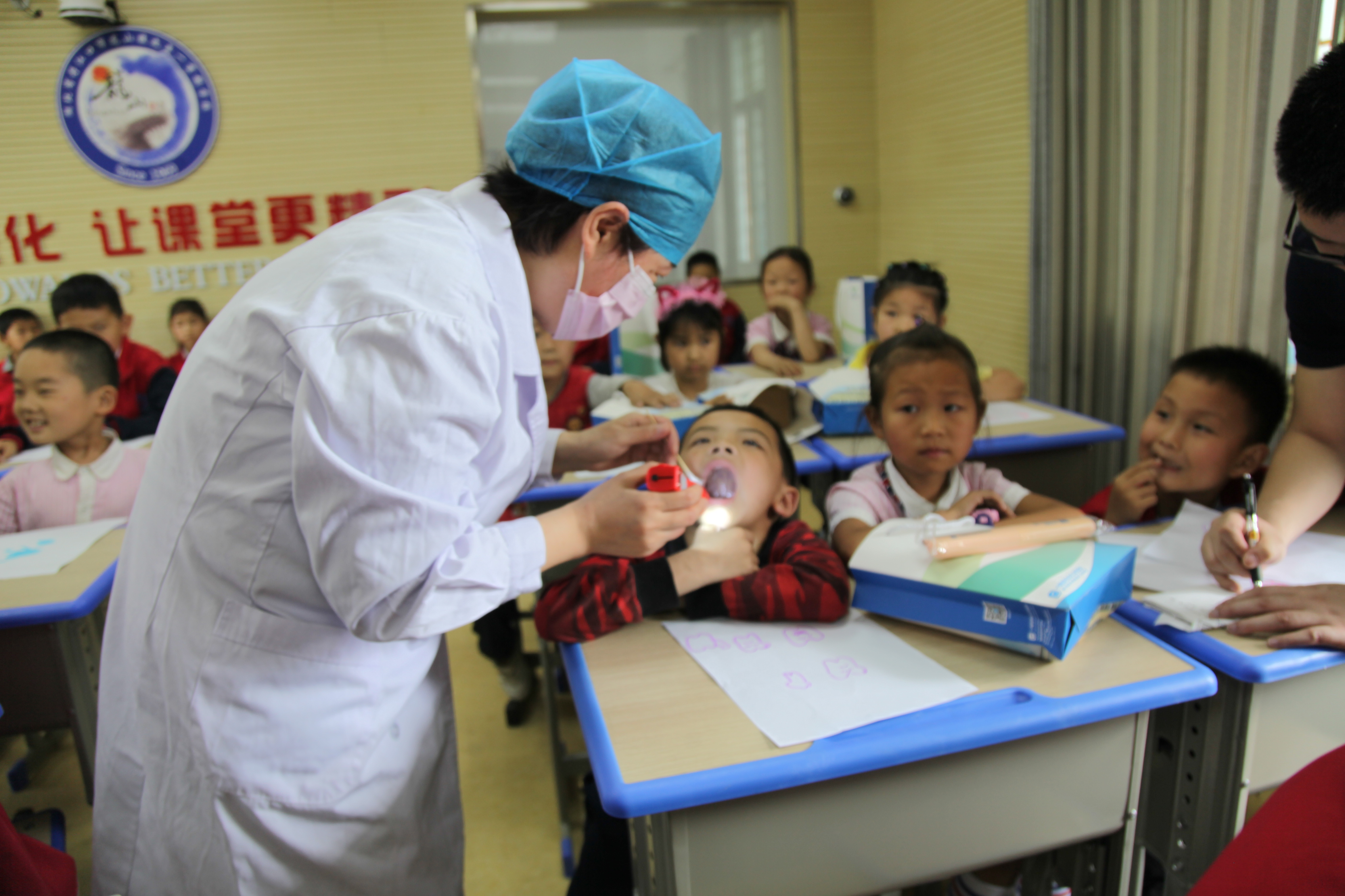 捐赠仪式结束后,党外人士专程看望了土台村孤儿陈晓峰,为其赠送了爱心书包和衣服,口腔医学院无党派人士董红教授和学生志愿者在活动现场为同学们开展了口腔健康普查和口腔卫生保健常识宣讲。