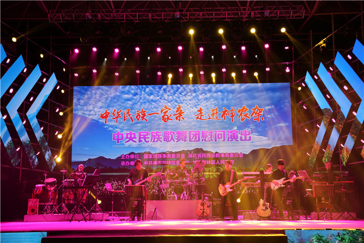 “电吉他、马头琴、手鼓、都塔尔、艾捷克、热瓦甫等民族乐器与现代电声乐队穿插融合,尽显音乐的爆发力、渲染力和穿透力。”中央民族歌舞团民乐团团长赵雄介绍,《弦歌逐梦》是中央民族歌舞团“一带一路”追梦系列的音乐会,在坚持少数民族返璞归真的音乐本质的基础上,融合当代国际流行音乐元素,和各族群众一起领略别样的民族特色和地域风情,此次来神农架表演,旨在丰富林区群众文化生活,促进地方民族团结。