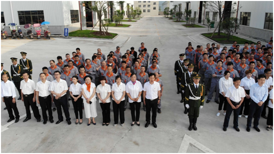 为了纪念新中国成立70周年,进一步弘扬民营企业家爱国主义精神,广泛激发民营企业家爱党爱国、爱县爱企的热情,践行通山精神、唱响新时代, 6月14日-15日咸宁市通山县工商联组织全体党员干部、全县民营企业家代表、玉龙机械和星火原全体企业员工在星光玉龙机械公司和星火原公司举行了两场升国旗仪式,合唱《我和我的祖国》。