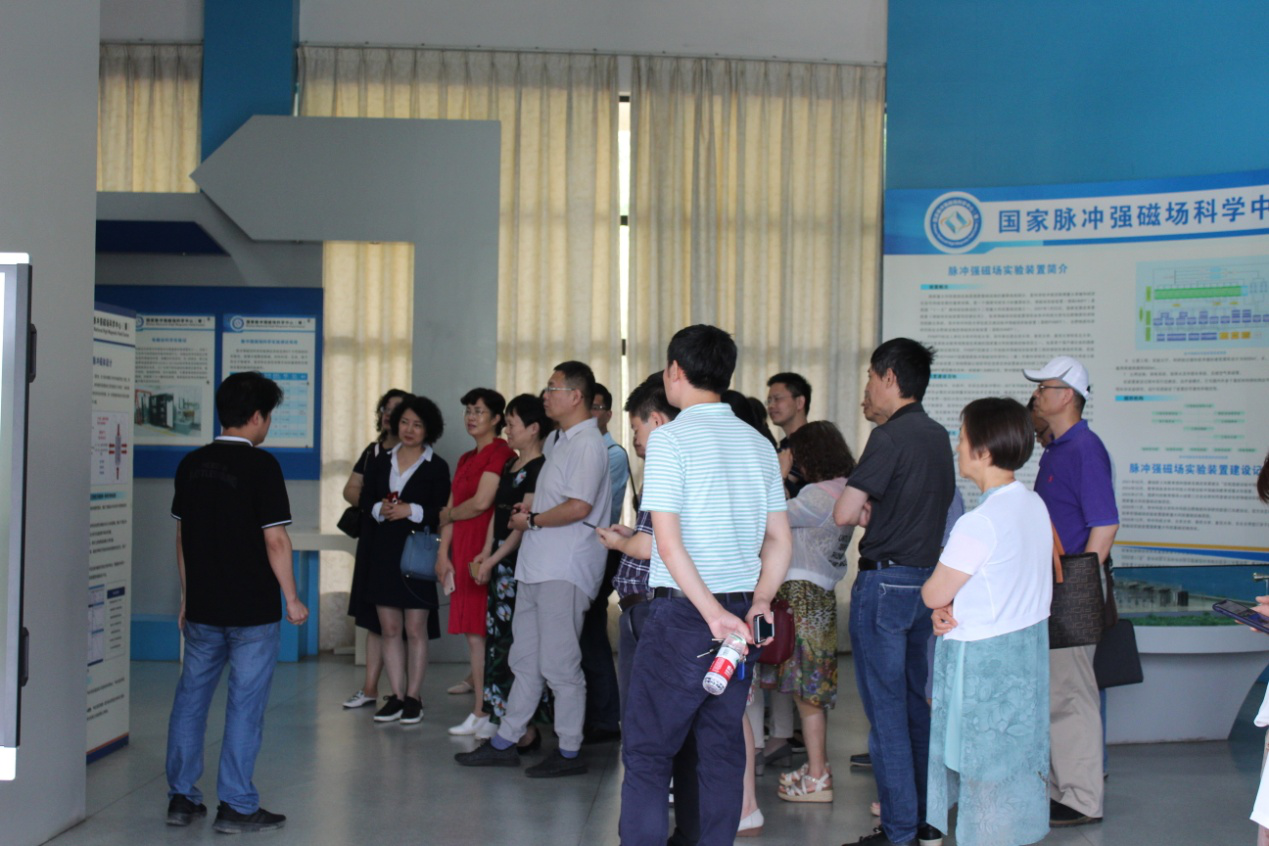 大家参观了华中科技大学国家重点实验室、国家重大科学工程项目。国家脉冲强磁场科学中心主任程远教授介绍了脉冲强磁场实验装置,脉冲强磁场实验室的特点以及脉冲强磁场技术的应用。大家还参观了生命科学与技术学院分子生物物理学教育部重点实验室、生命科学研究共享平台、教育部生命科学与技术虚拟仿真实验教学中心。