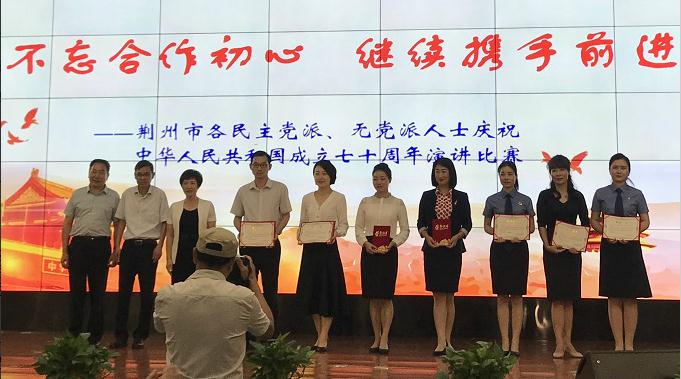 9月27日,荆州市委统战部、市各民主党派共同举办“不忘合作初心·继续携手前进——荆州市各民主党派、无党派人士庆祝中国人民共和国成立70周年演讲比赛”隆重举行。市政协副主席、民盟荆州市委会主委林红致辞。