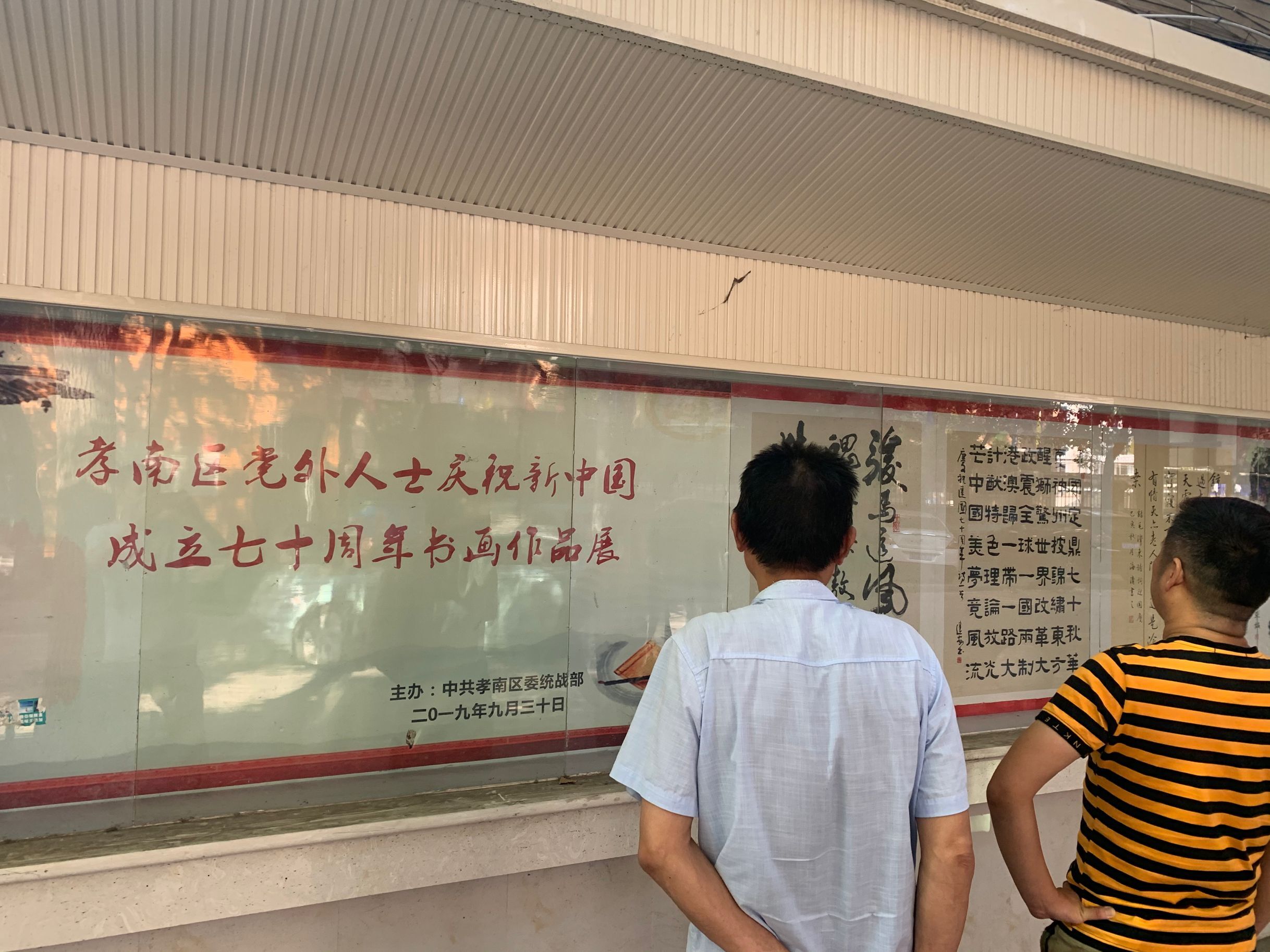 在区政府门前的宣传橱窗,由孝南区委统战部举办的“全区党外人士庆祝新中国成立七十周年书画展”吸引路人纷纷驻足观看,本次书画共收到全区党外人士书画作品50多幅,作品紧紧围绕“新中国成立70周年”这一主题,以书寄情,以画寓情,表达对党、对祖国、对社会主义的热爱,歌颂中国特色社会主义建设取得的伟大成就。