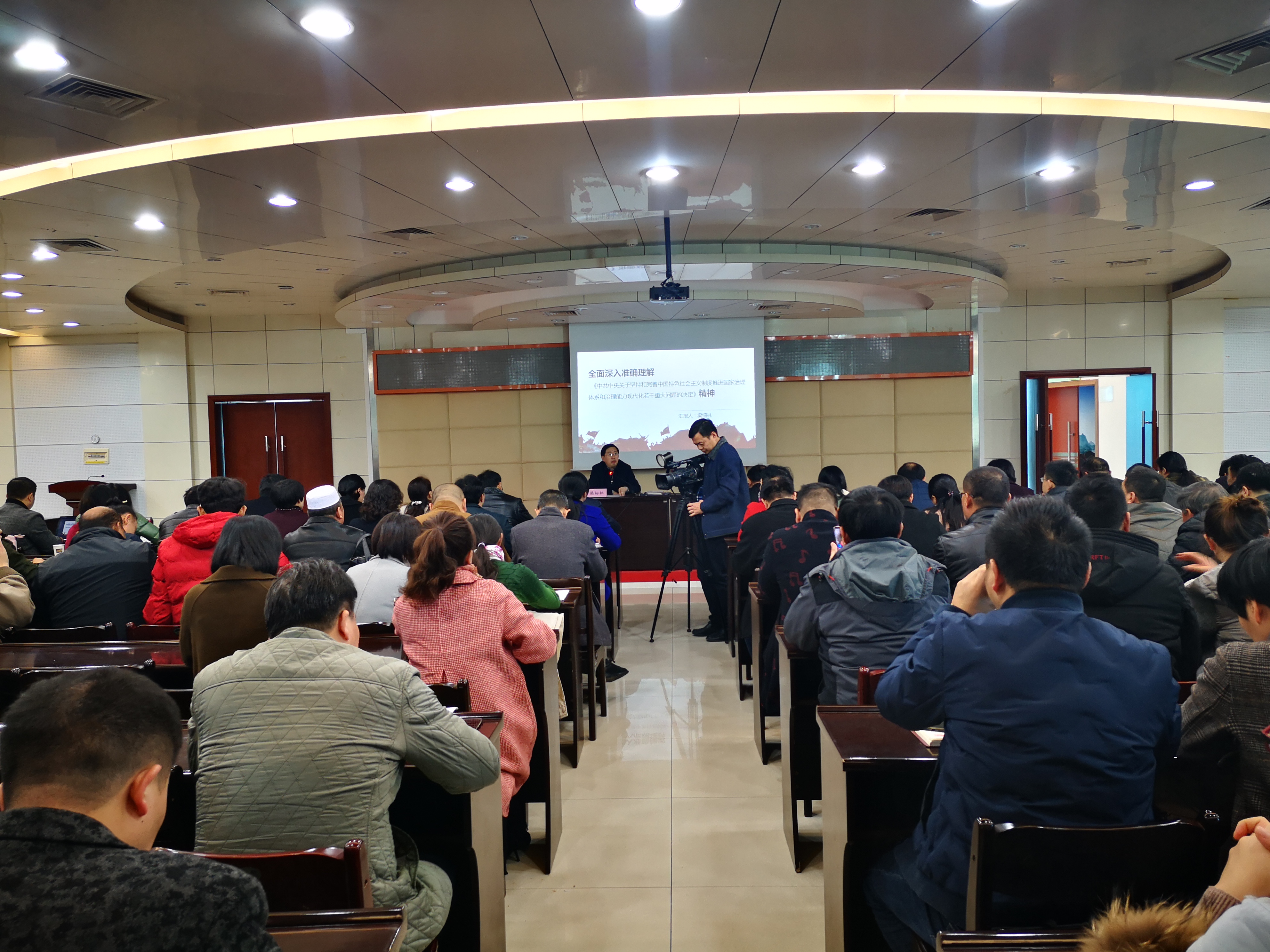 12月3日,咸宁市统战系统在市会议中心举行中共十九届四中全会精神宣讲报告会,咸宁市委常委、统战部长梁细林作宣讲报告。
