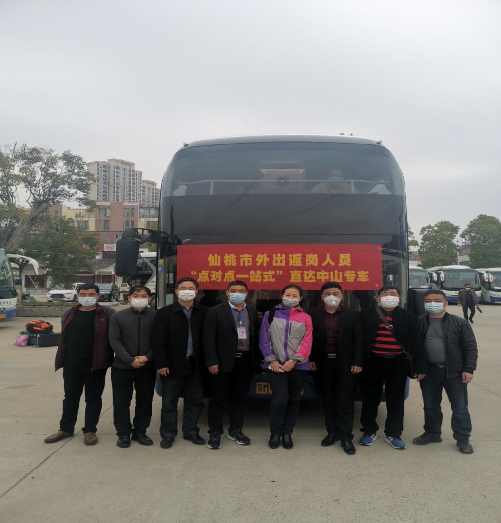 3月15日,仙桃市首批“点对点”“一站式”专车从仙桃东出发,前往上海,20多名沔商及其企业员工有序乘坐专车返岗。