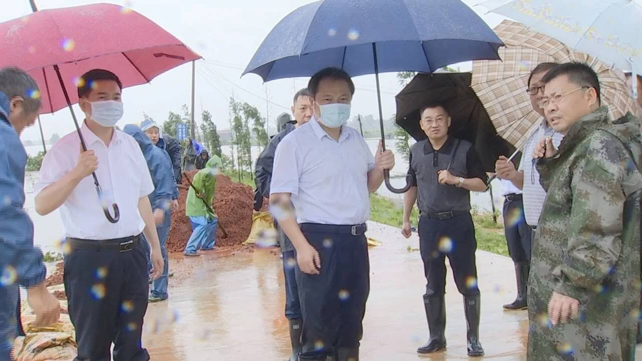 △市委书记李新桥、市委副书记、市长陈风到太白湖检查防汛防守工作,市委常委、统战部部长、太白湖区防汛指挥部指挥长叶国庆介绍防汛防守情况