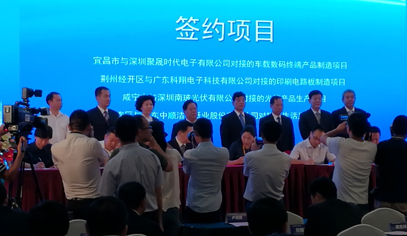 9日,2016鄂粤合作项目对接洽谈会在深圳举行,湖北与珠三角地区企业共达成合作项目25个,投资金额330.9亿元。其中,50亿元以上项目1个,20亿元以上的项目7个,10亿元以上的项目5个,亿元以上项目12个,涉及加工贸易、电子商务、电子信息、新能源、新材料、产业园区建设等多个领域。