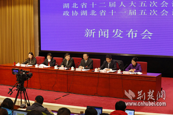 2017年湖北省“两会”第三场新闻发布会现场。(张扬 摄)