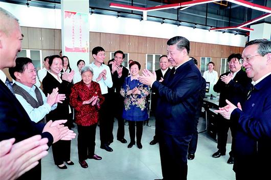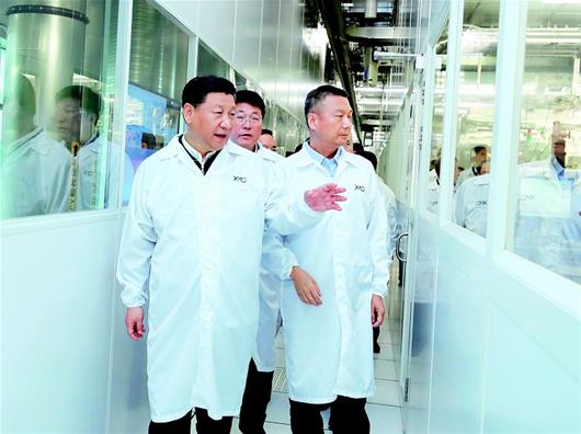 图为:4月26日上午,习近平在武汉新芯集成电路制造有限公司考察企业创新发展情况。