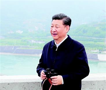 图为:4月24日下午,习近平在三峡大坝坝顶察看三峡工程和坝区周边生态环境。