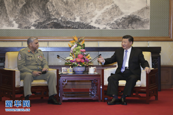 9月19日,国家主席习近平在北京会见巴基斯坦陆军参谋长巴杰瓦。 新华社记者 李刚 摄