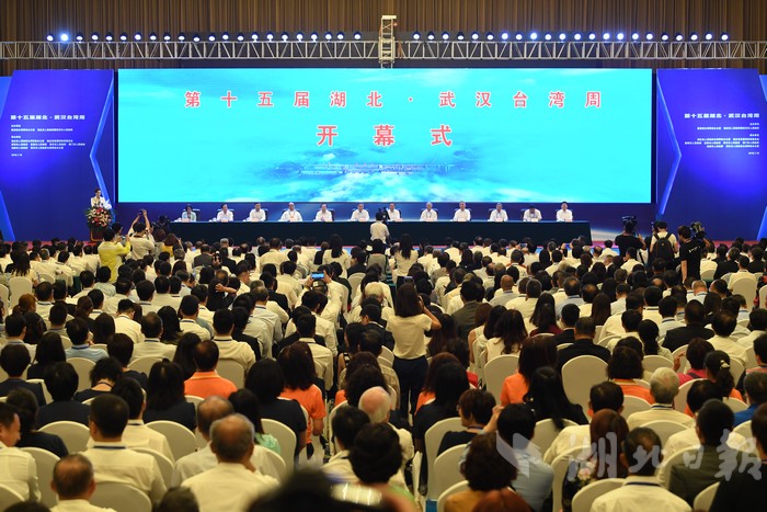 湖北日报讯(记者张晓峰、周呈思、陈鹏)山水隔不断,鄂台一家亲。7月18日,由国务院台办、省政府暨武汉市政府共同主办的第十五届湖北·武汉台湾周,在武汉东湖国际会议中心开幕。以“共享机遇,推进融合,聚力高质量发展”为主题,1200多名海峡两岸嘉宾共商鄂台合作发展大计,促进两岸关系和平发展。