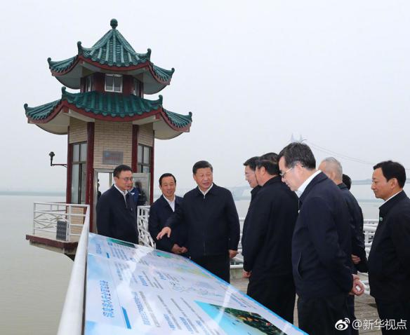 2018年4月25日,习近平考察被誉为洞庭湖及长江流域水情“晴雨表”的城陵矶水文站。图片来源:新华社