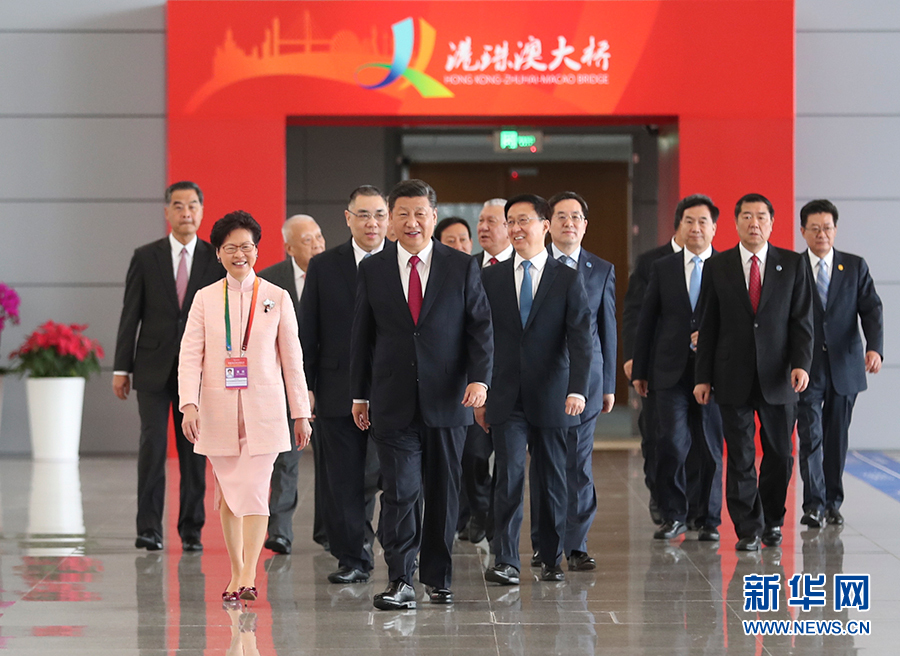 在观看了反映大桥建设情况视频后,中共中央政治局委员、广东省委书记李希,香港特别行政区行政长官林郑月娥,澳门特别行政区行政长官崔世安和韩正先后致辞。