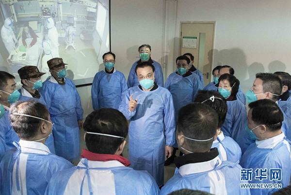 1月27日,受习近平总书记委托,中共中央政治局常委、国务院总理、中央应对新型冠状病毒感染肺炎疫情工作领导小组组长李克强赴武汉考察指导疫情防控工作,代表党中央、国务院慰问疫情防控一线的医务人员。他强调,各地各部门要深入贯彻中央政治局常委会会议精神,全面落实党中央、国务院决策部署,把人民群众生命安全和身体健康放在第一位,同舟共济、齐心协力做好疫情防控工作。